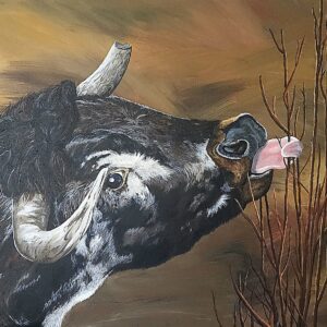 Titel: Die Kuh Technik: Acrylmalerei Künstlerin: Katharina Raaf Entstehungs Jahr: Größe ohne Rahmen: 80×61 cm