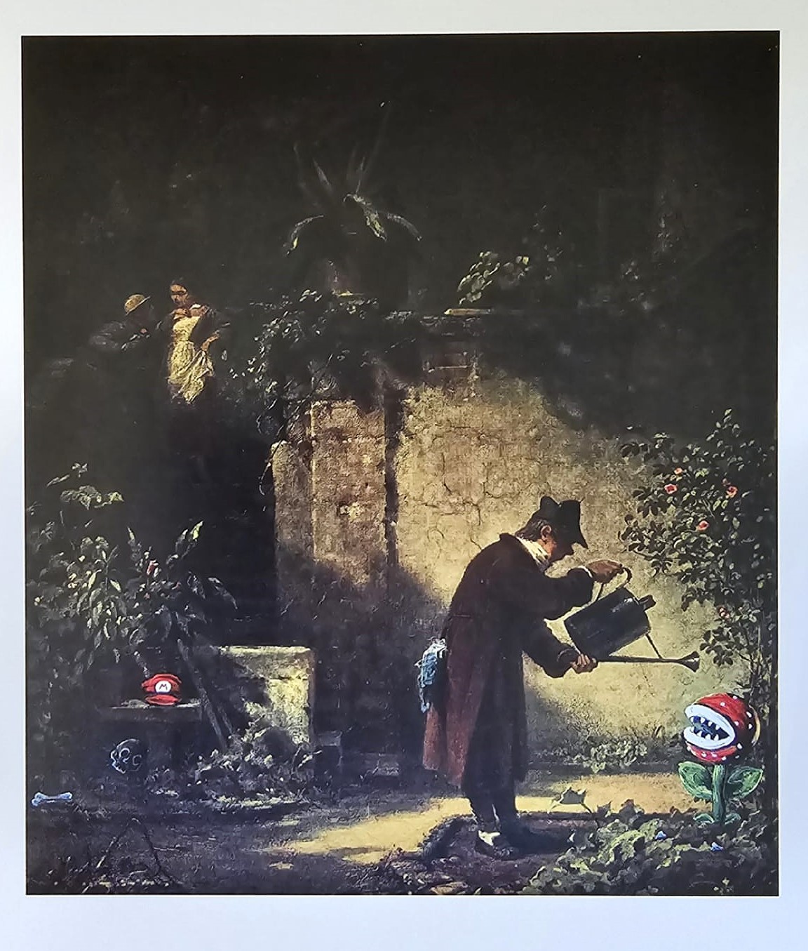 „Spitzweg Blumen gießen“ – verändertes Gemälde von Katharina Raaf