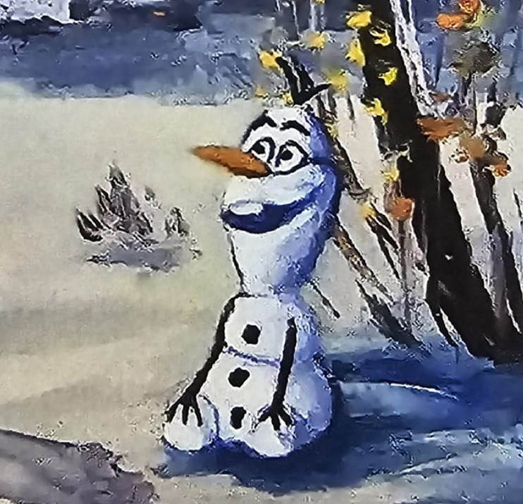 „Olaf im Winterwunderland“ – verändertes Gemälde von Katharina Raaf