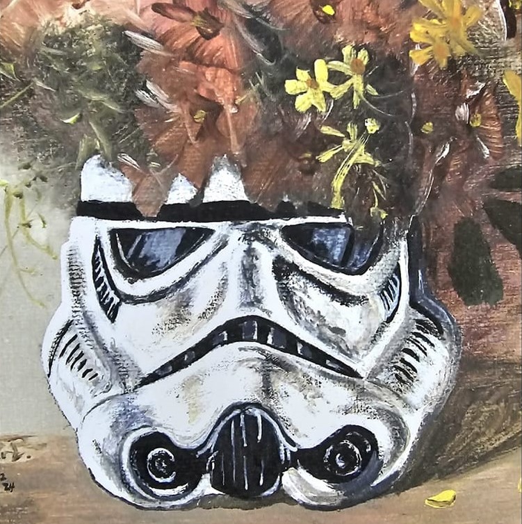 „Trooper Vase“ – verändertes Gemälde von Katharina Raaf