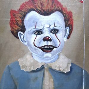 Dieses Ölbild zeigt eine kreative Neuinterpretation eines ursprünglich gemalten kleinen Jungen. Durch Kratzer im Gesicht des ursprünglichen Motivs entstand die Idee, das Bild in eine neue Richtung zu führen. So entstand der kleine Pennywise, der gelassen mit einem roten Ballon posiert. Titel: Der kleine Pennywise Ursprünglicher Künstler: Peters Entstehung Jahr: Technik: Öl/- Acrylmischtechnik Größe ohne…